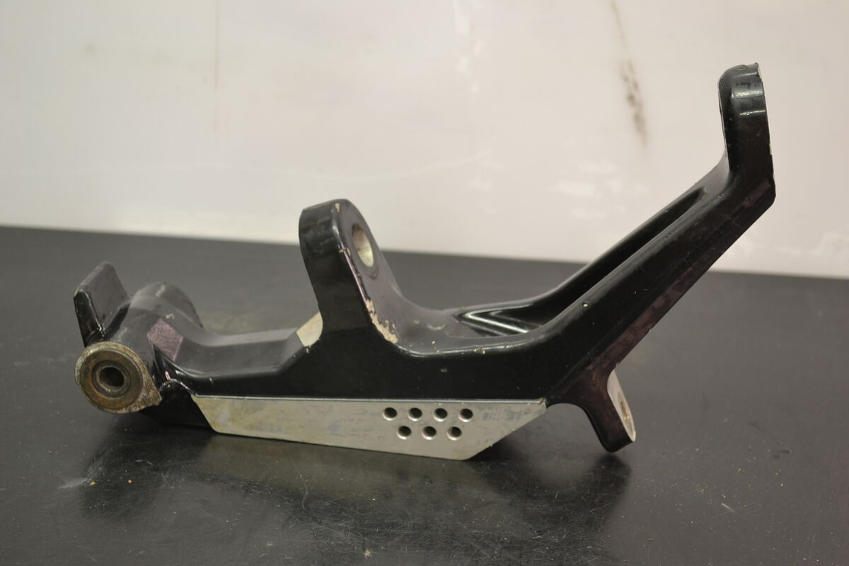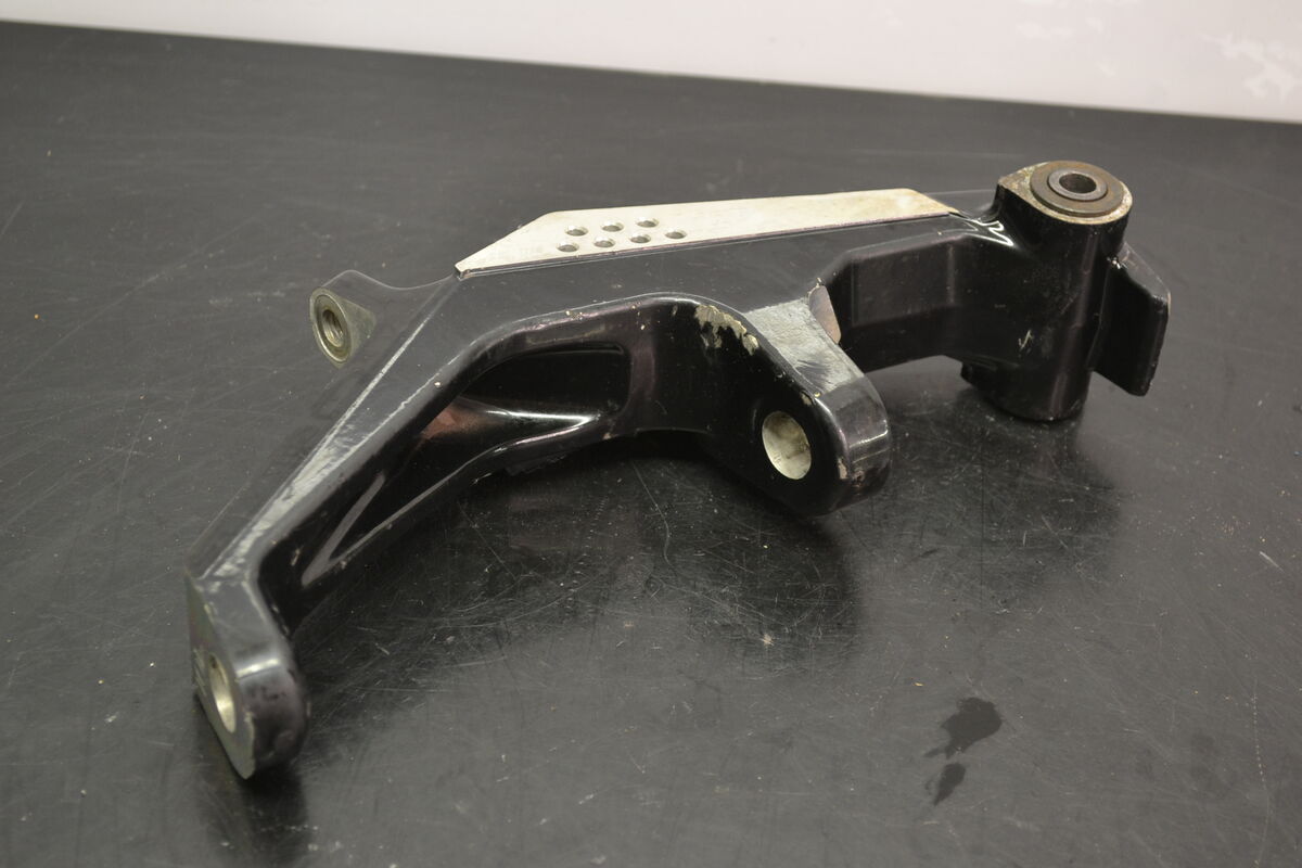 Left-hand steering knuckle from a 2015 Lynx Rave RE 600 Etec snowmobile. The ball joint mounting cones are in good condition. The part shows minor signs of use, but nothing that affects its functionality.