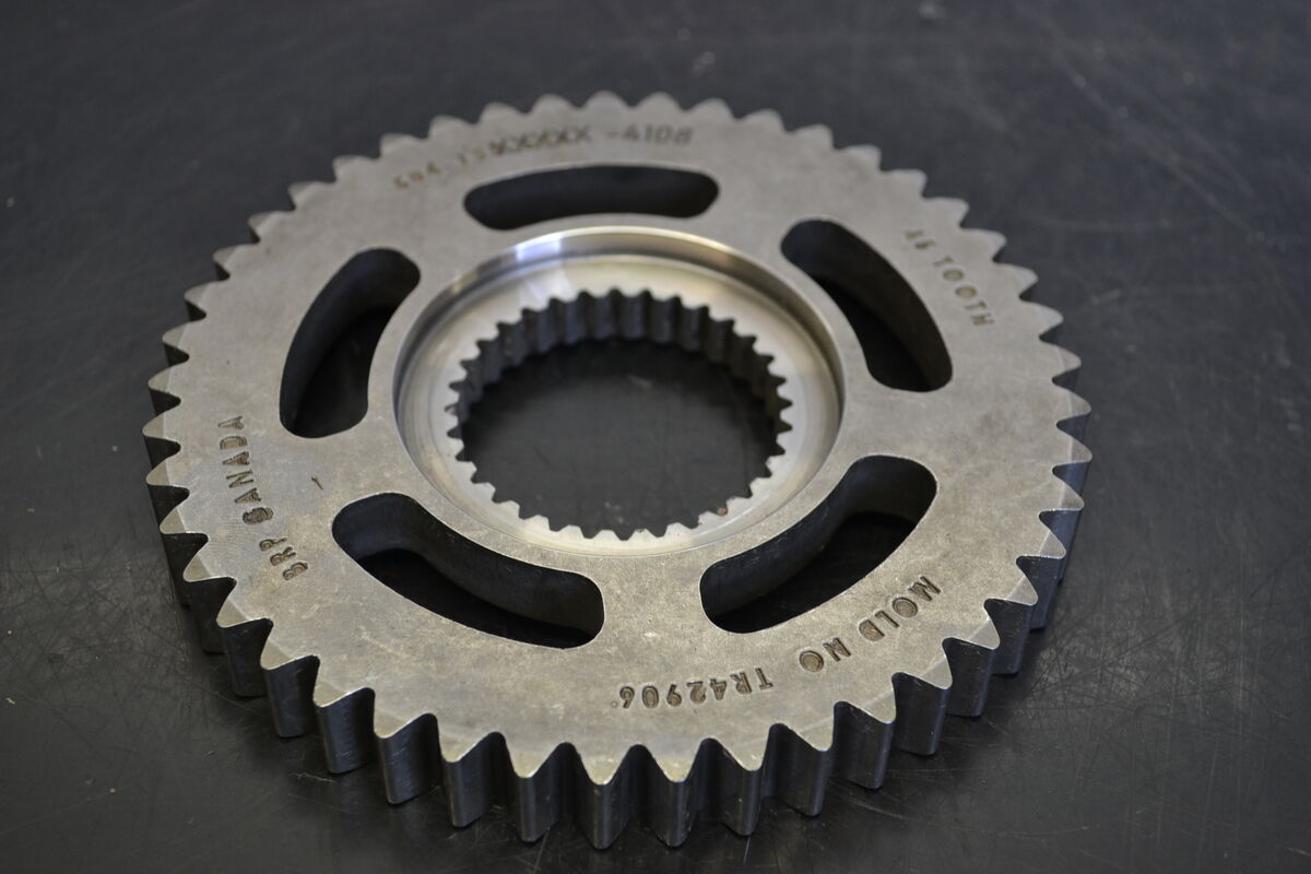 45 hampainen alempi hammasratas Lynx ja Ski-Doo kelkkoihin. Käytetty, alkuperäinen Brp varaosa. Purettu Lynx Commander 900 Ace 2022 kelkasta.