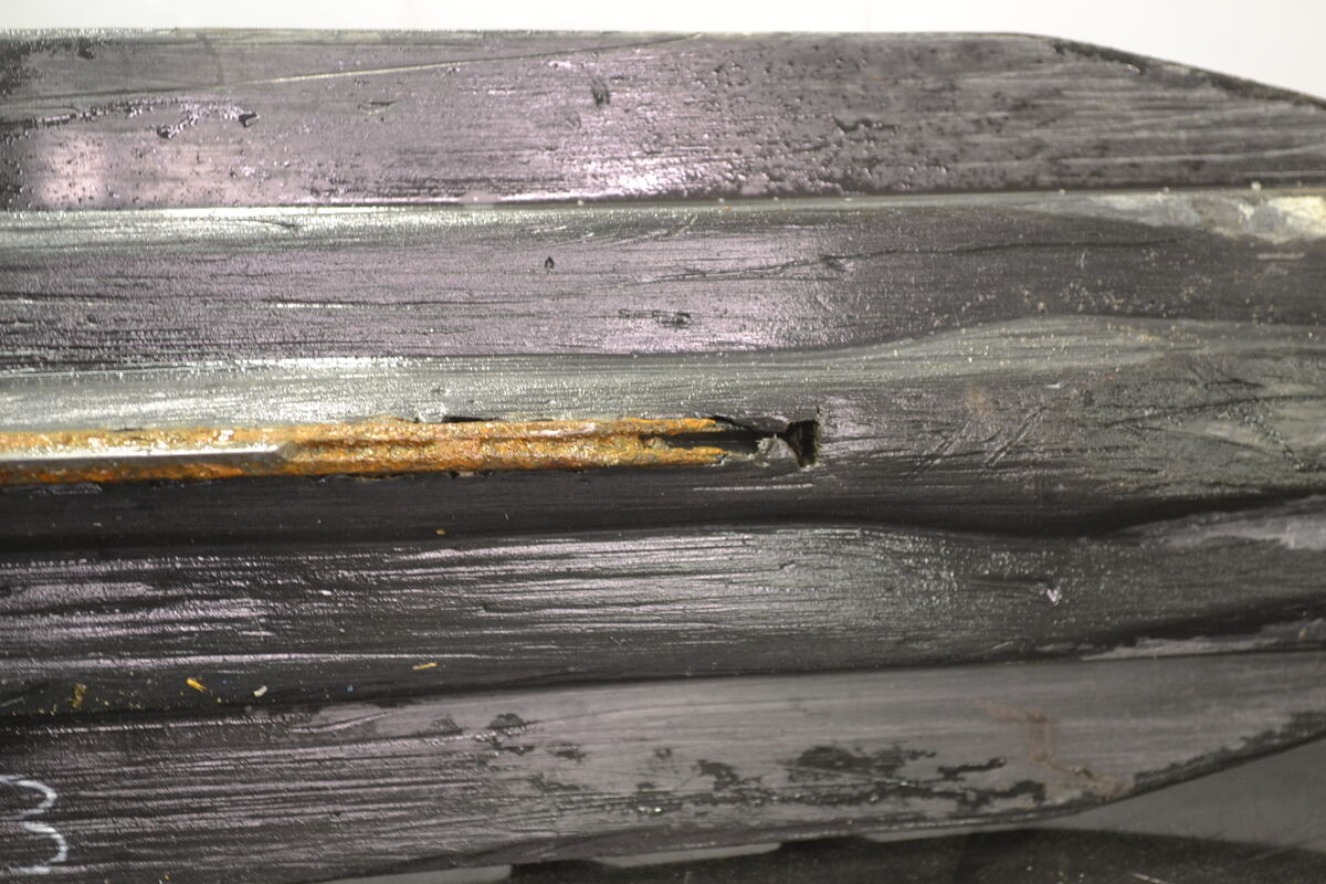 Pohjissa hieman kulumaa ja normaaleja käytöstä tulleita jälkiä. Ohjainraudat ovat vielä hyväkuntoiset ja kovametallit ovat hyvin tallella.