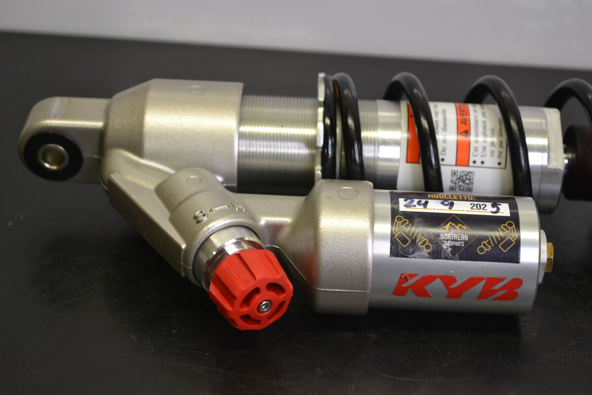 Etupukin lisäsäiliöllinen iskunvaimennin Ski-Doo Freeride 850 Etec 2019 kelkasta. Uudenveroinen iskunvaimennin, purettu kelkasta öhlinssien alta pois. Todella siisti käyttöön valmis iskari joka sopii useisiin Ski-Doo kelkkojen alustoihin.