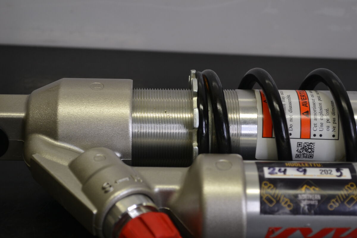 Vaimentimesta löytyy puristusvaimennuksen säädöt helposti yhden nupin alta. Paikallaan alkuperäinen apu ja pääjousi. Esijännityksen säätö toimii moitteettomasti.