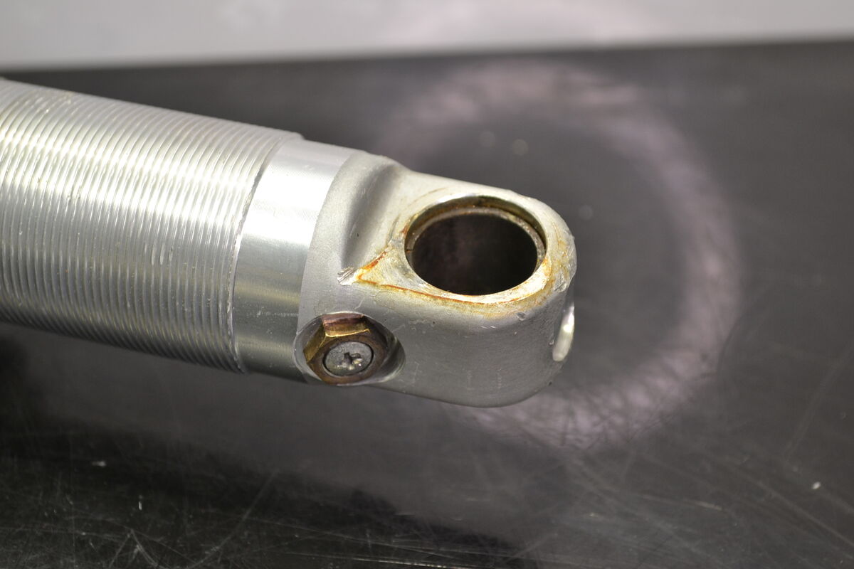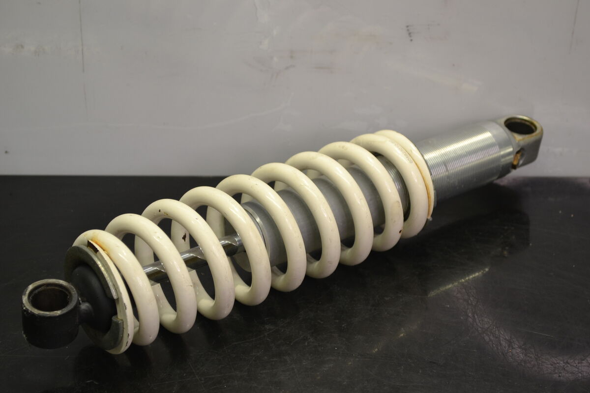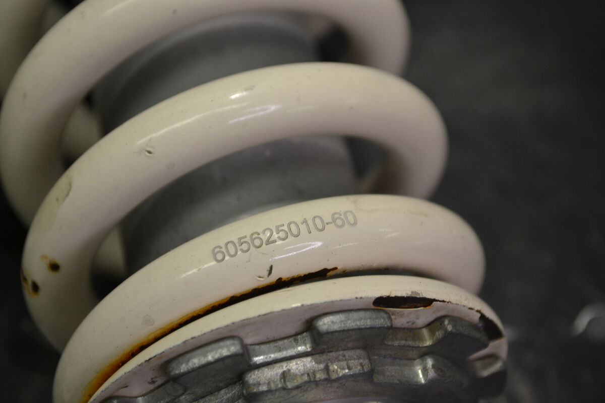Lynx Rave Sc 600 Etec kelkasta purettu etupukin iskunvaimennin. Paikallaan on 60 Nm jousi. Iskunvaimentimesta löytyy esijännityksen säätö. Kyseinen iskunvaimennin on huollettavissa.