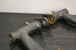 Ski-Doo Summit X 800 Etec 154" 2013 kelkan alustasta purettu etupukki. Alkuperäiset hitsaukset kunnossa. Ei korjailtu mistään. Maalipinnassa hieman sanomista.