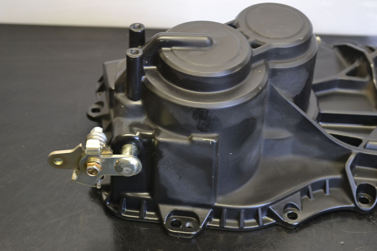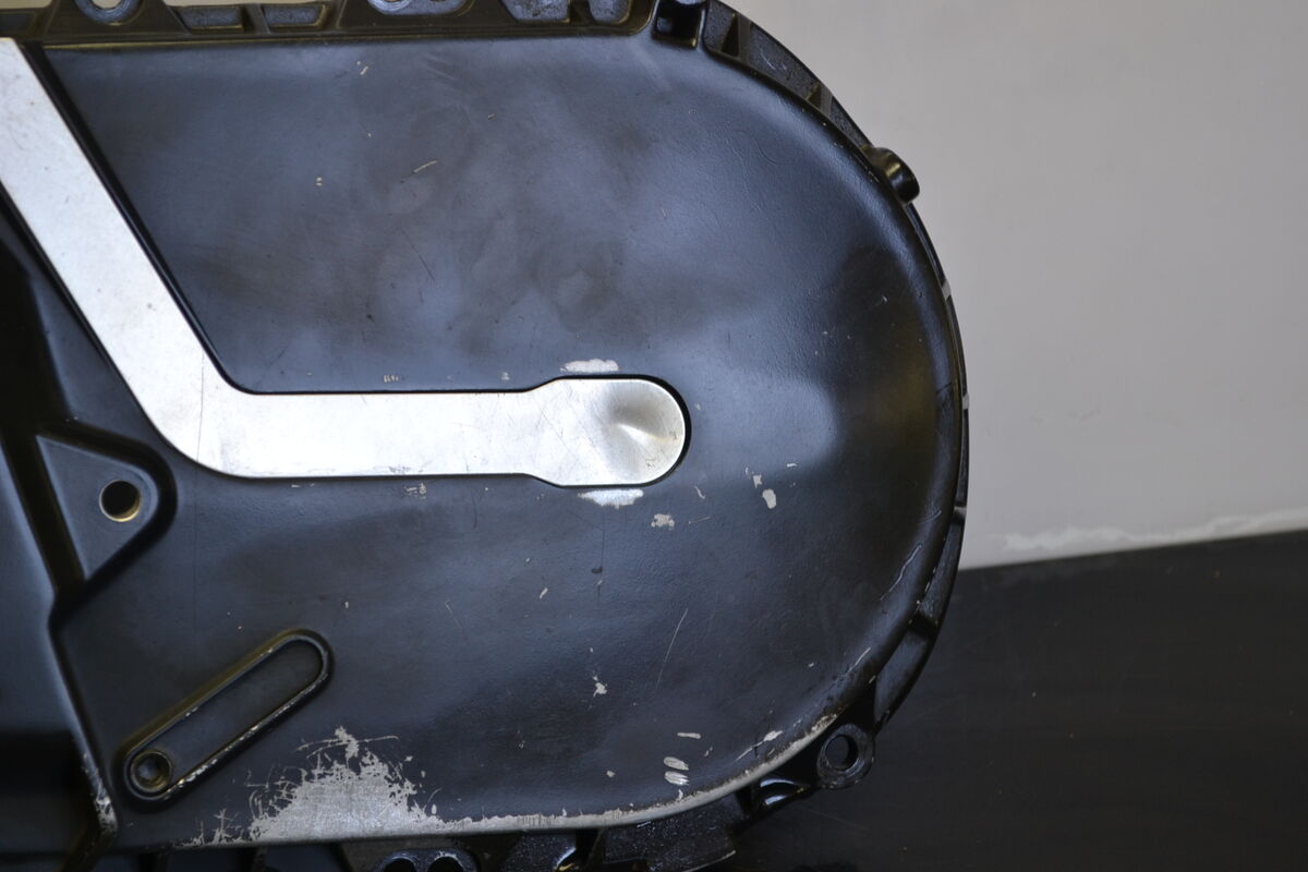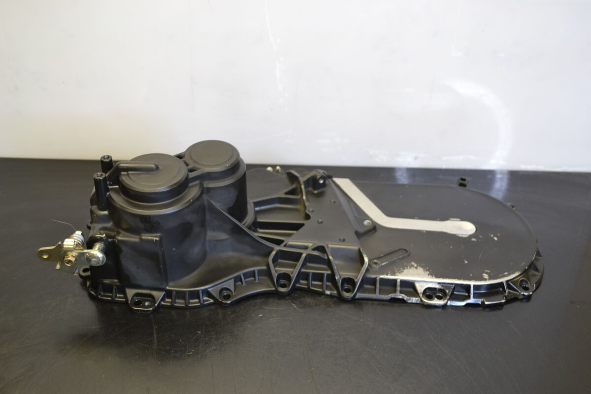 Ketjukotelon kansi Lynx Commander 900 Ace 2022 kelkasta. Kotelon laakeripesät ja tiivistepinnat ovat hyvässä kunnossa. Maalipinnassa hieman sanomista sekä nopeusmittarin anturin suojassa pieni lommo.