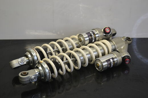 Täydellinen iskunvaimennin pari Lynx Rave RE 600 Etec 2013 kelkasta. Jousien jäykkyys 18nm maalissa hieman sanomista. Iskunvaimentimen runkoihin asennettu suojamuovit. Kaikki puristus, paluu ja jousien säädöt toimivat täysin.