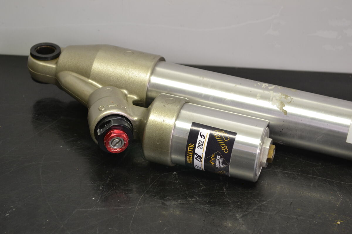 Siistikuntoinen takapukin lisäsäiliöllinen iskuvaimennin Ski-Doo kelkasta. Iskunvaimentimen reikäväli noin 55 cm. Iskuvaimentimen mukana toimitetaan alapään pusla. Huollettu ja tarkastettu meillä 11.8.2025. Suoraan ajoon valmis iskunvaimennin josta löytyy puristuspuolen säädöt.