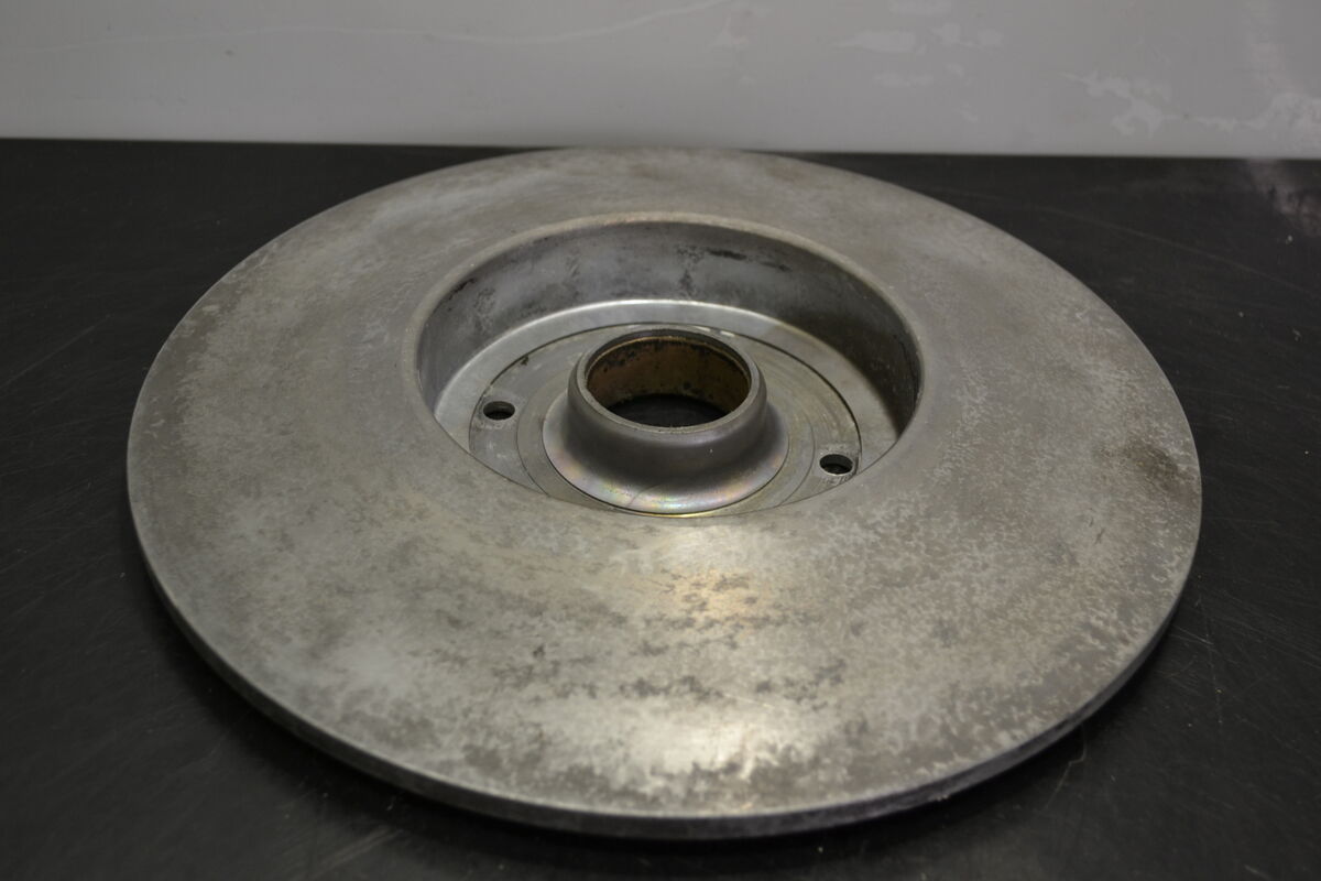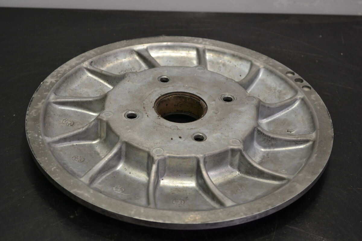 Vanhemman 2008-2017 vuosina käytetyn QRS variaattorin liikkuva lautanen. Pultinreiät kunnossa. Helixin puslassa normaalia käytössä tullutta kulumaa. Lautanen sisäpuolelta kunnossa.