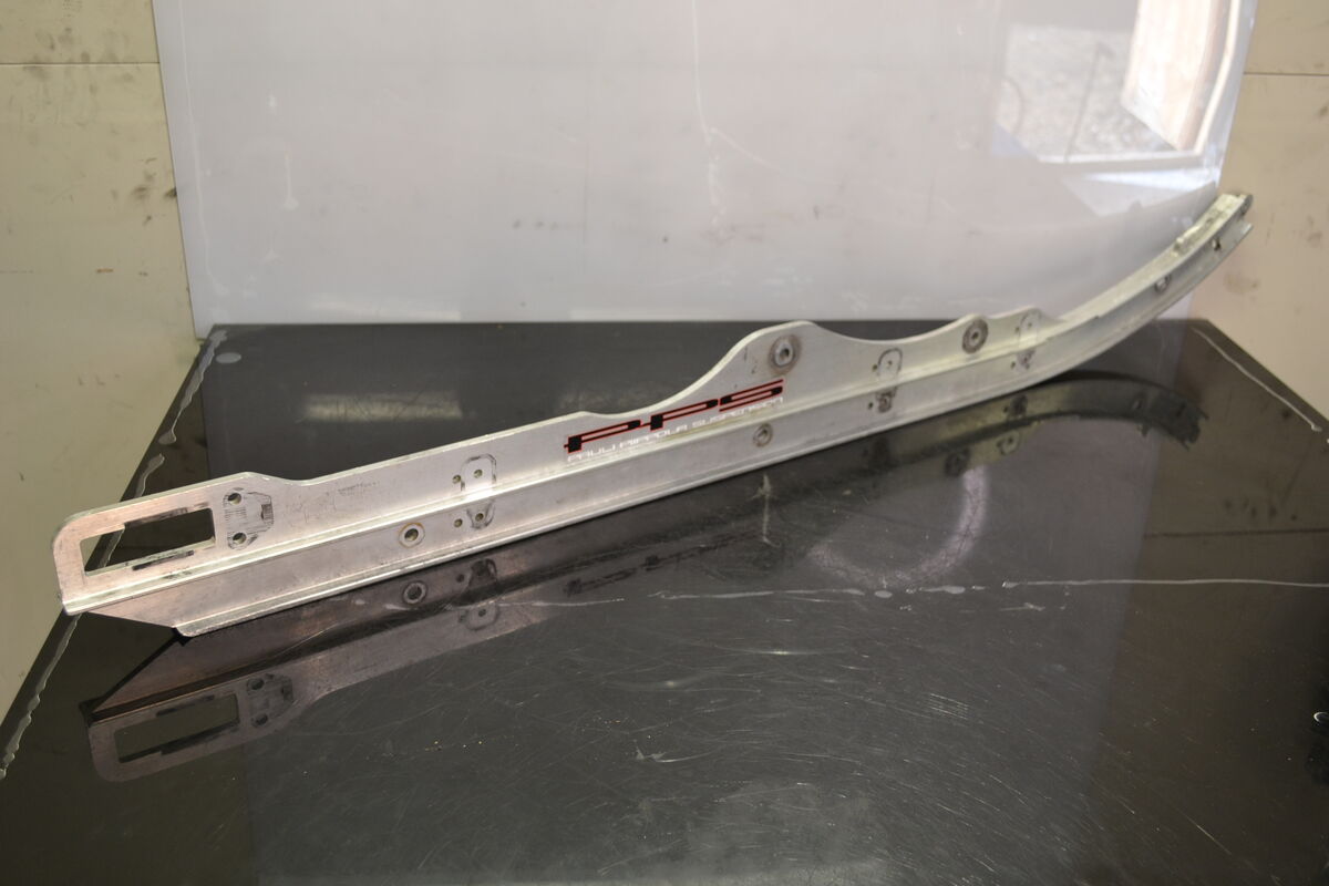 Liukurunko lyhyestä PPS telastosta. Purettu Lynx Rave Sc 600 Etec 2011 kelkasta. Rajoitinremmin akseli on kuluttanut liukurunkoa sisäpuolelta,kun pultti on päässyt löystymään. Ollut käytössä telaston oikealla puolella