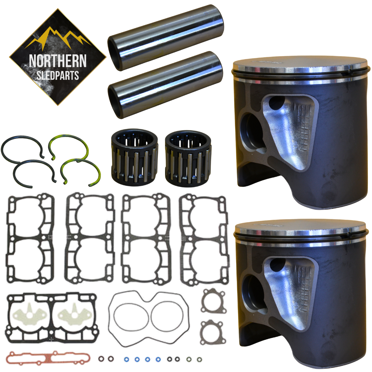 Paketti sisältää alkuperäiset BRP/Rotax männät, neulalaakerit ja mäntien muut asennus tarvikkeet sekä NSP:n laadukkaan yläpään tiivistesarjan.