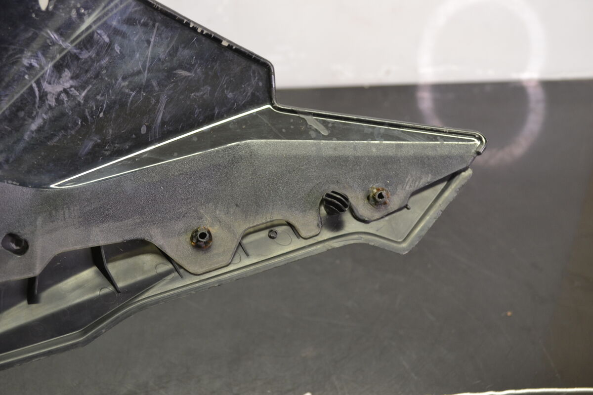 Matala tuulilasi Lynx RS 600 2016 kelkasta. Saanut joskus hieman osumaa. Sisäpuolelta kiinnitys natsoja poikki. Vaatisi hieman liimaa lasin ja kehyksen väliin jotta olisi täysin jämäkkä. Kaikki tuulilasin yläkuomuun kiinnittävät tapit kuitenkin tallella joten kiinni pysymisen kannalta ei murhetta. Pleksi maalattu ulkopuolelta kumimaalilla mustaksi.