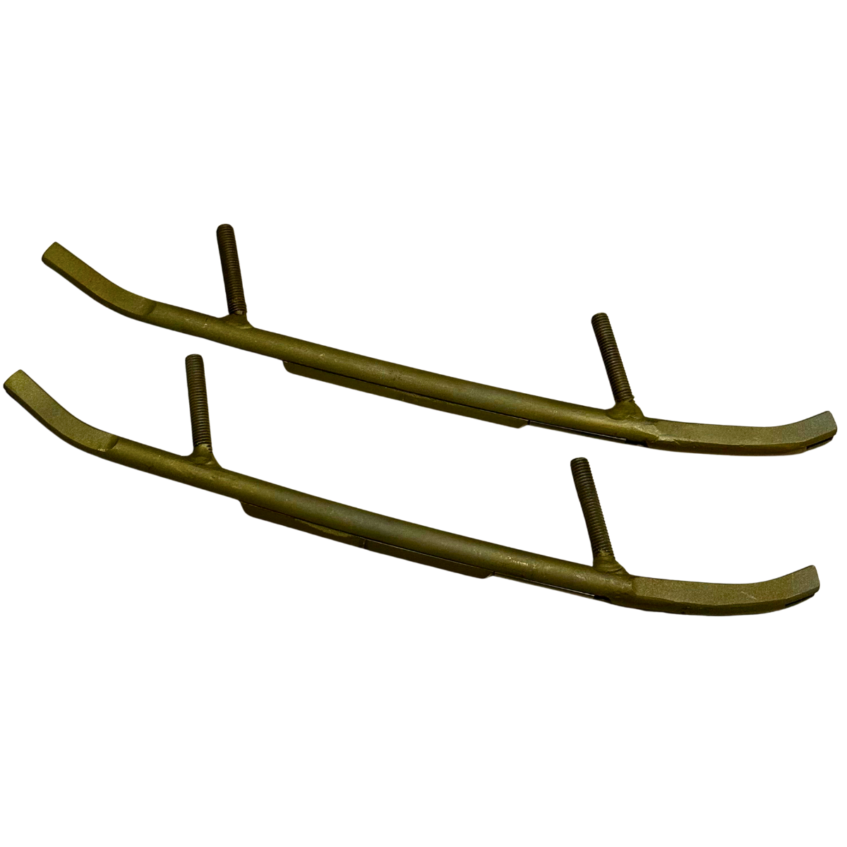 Trail-tyyppinen ohjainrauta, jossa kovametallipalat on asennettu 60 asteen kulmaan, mikä tukee suuntavakavuutta ja ennustettavaa ohjausta.