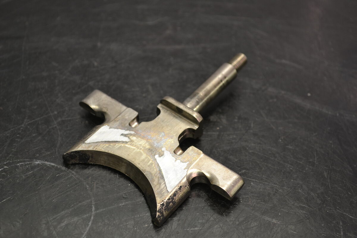 800 Etec moottorista purettu rave-venttiilin alempi luisti. Luistissa on hieman käytössä tullutta kulumaa, mutta ei mitään käyttöä haittaavaa. Yläpäässä oleva kierre on kunnossa.