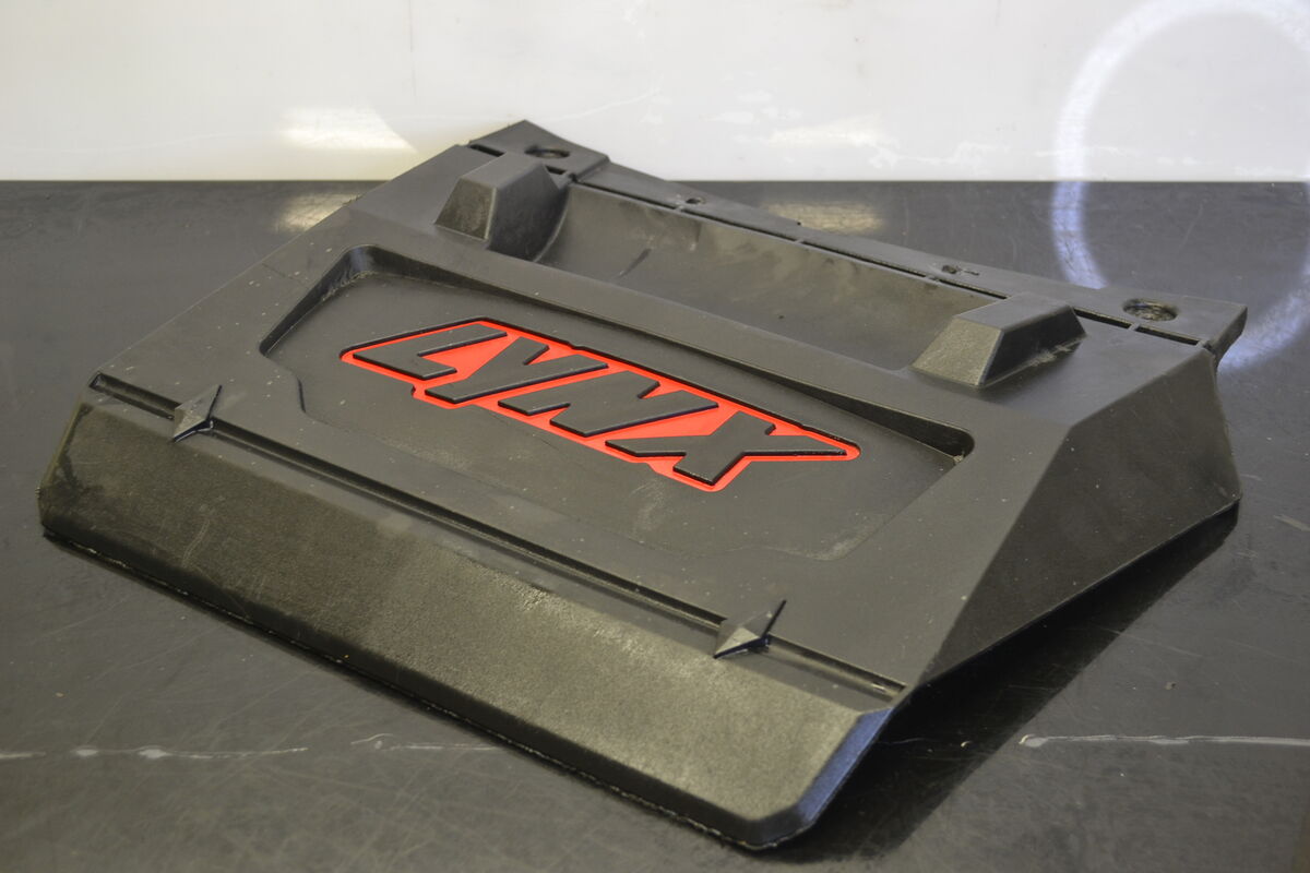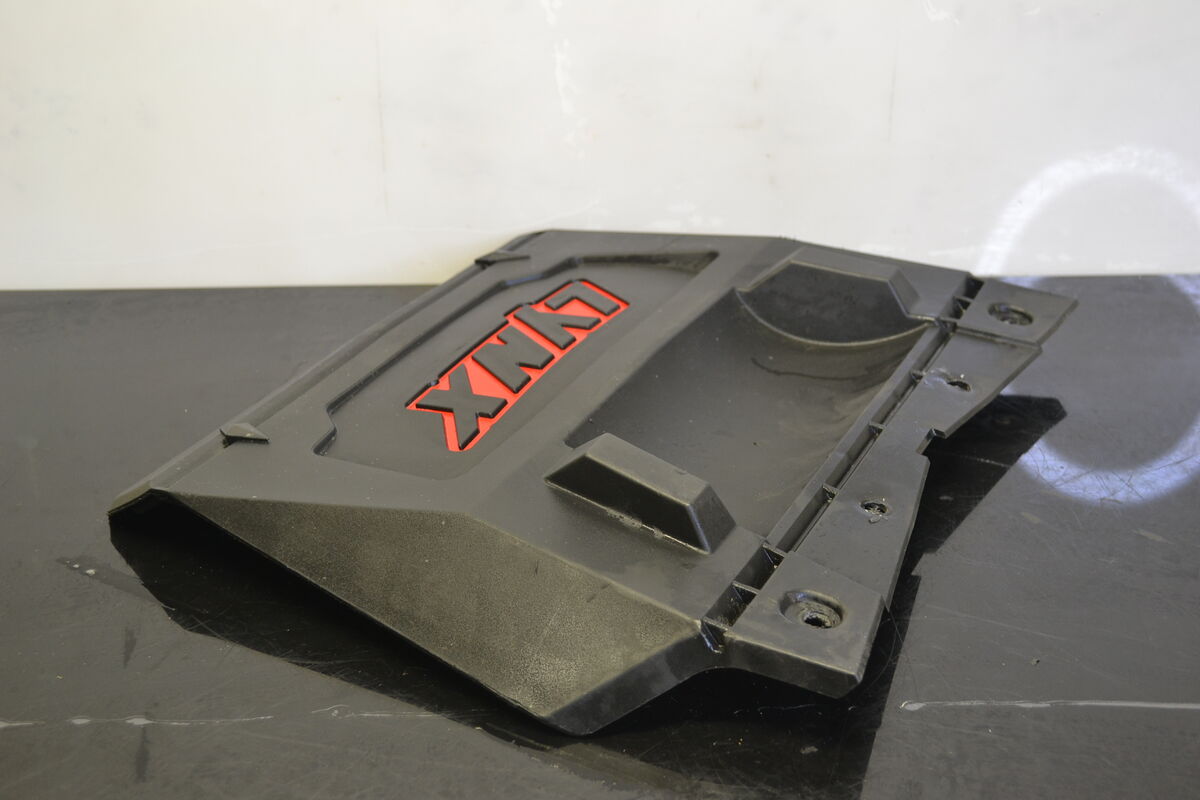 Roiskeläppä punaisella Lynx tekstillä Lynx Rave Re 600 Etec 2009 kelkasta. Ei halkeamia mikä on todella poikkeuksellista, kiinnitys rei'issä hieman sanomista. Näitä on todella harvoin tarjolla ehjänä!