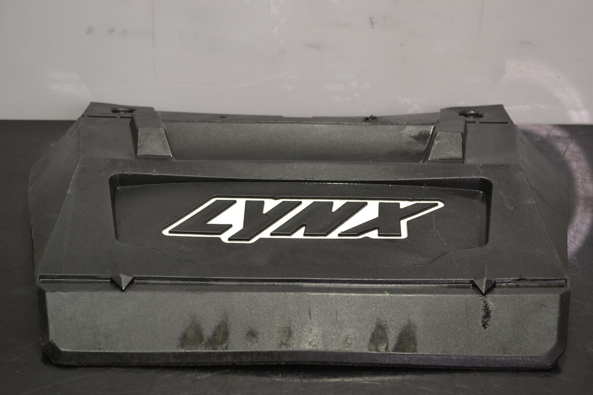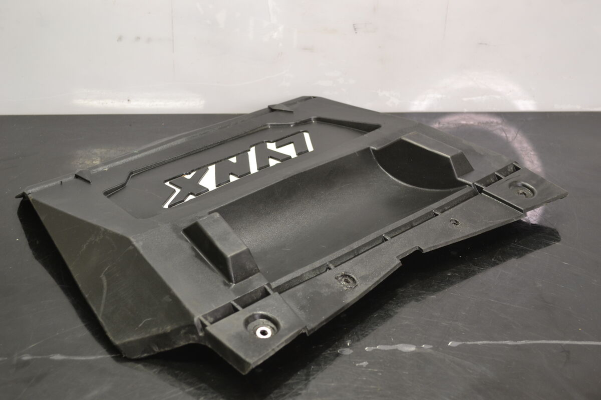 Roiskeläppä valkoisella Lynx tekstillä Lynx Rave Sc 600 Etec 2011 kelkasta. Ei halkeamia mikä on todella poikkeuksellista, kiinnitys rei'issä hieman sanomista. Näitä on todella harvoin tarjolla ehjänä!