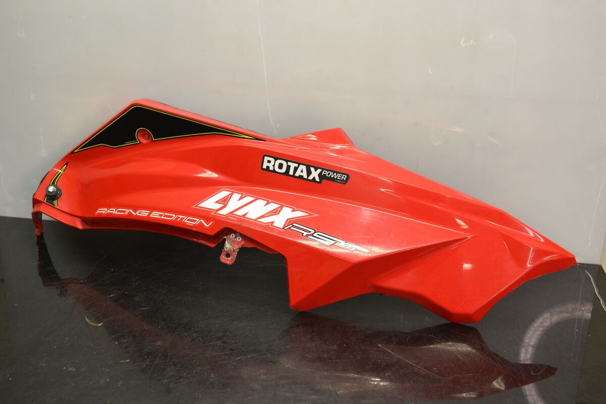 Hyvä sivupaneeli Lynx Rave Re 600 Etec 2015 kelkasta. Osa isompaa yläkuomua/konepeltiä. Soveltuu Rex 2 runkoisiin Lynx kelkkoihin 2014-2017. Kiinnikkeet kunnossa. Yhtä kiinnikettä korjattu ja vahvistettu. Paikallaan alkuperäiset Rave Re mallin teippaukset. Sopii kelkan oikealle puolelle.
