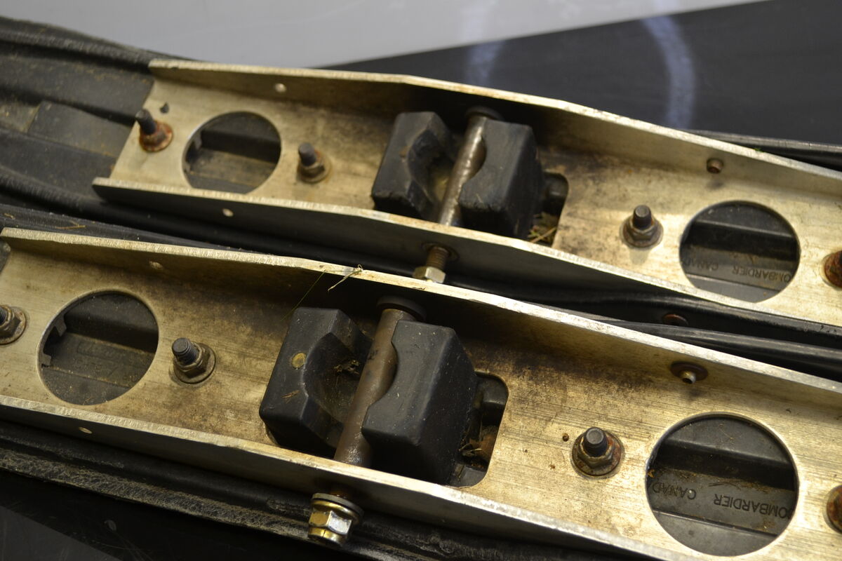 Ski-Doo Mxz 600 1999 kelkan vakio sukset. Toisessa suksen lenkissä vauriota, mutta on kuitenkin vielä yhtenä kappaleena. Ohjainraudoissa kovametallia vielä tallella, toinen rauta vaatii oikaisun. Sisältää suksen tukikumit ja kiinnityspultit Soveltuu suoraan 2000 luvun alkupään Ski-Doo kelkkoihin.