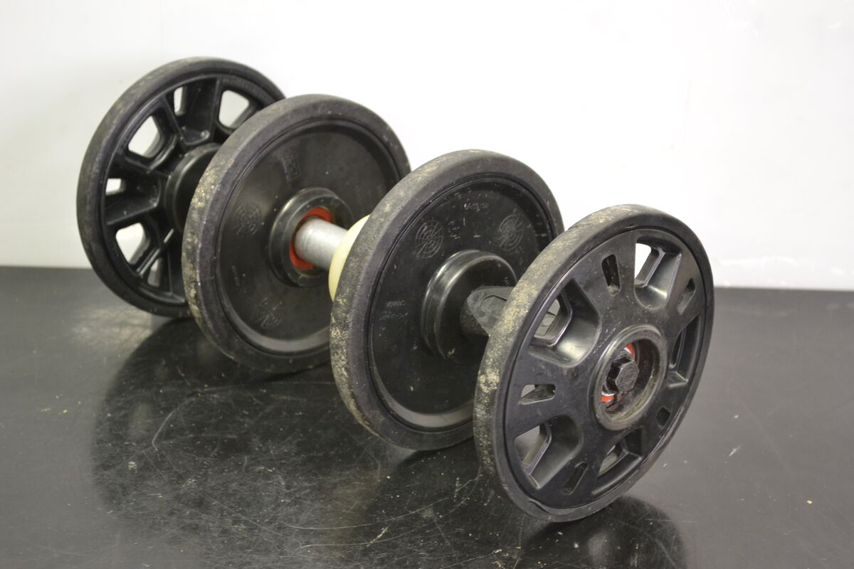 Täydellinen taka-akseli Ski-Doo Mxz Xrs 600 Etec 2014 kelkasta. Jykevä akseli jossa 4 kappaletta 165mm kääntöpyöriä. Soveltuu erinomaisesti kovempaan reittiajoon. Akselissa hieman käytön jälkeä. Akselin halkaisija 20mm.