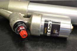 Takapukin lisäsäiliöllinen iskunvaimennin Ski-Doo Mxz Xrs 600 Etec 2011 kelkasta. Vaimentimesta löytyy nopean ja hitaan puristusvaimennuksen säädöt.