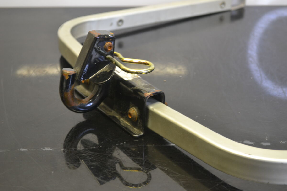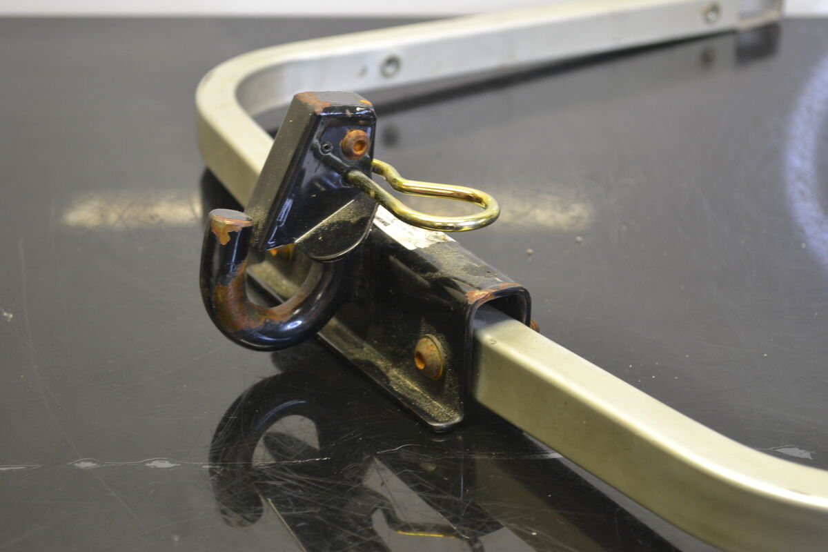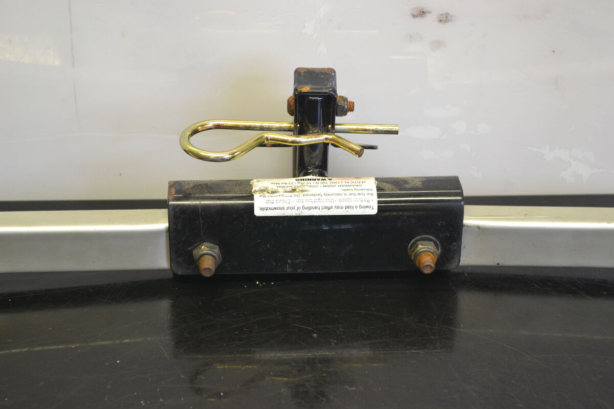 Alkuperäinen Lynx Rave RE 600 Etec 2009 kelkan takapuskuri johon on asennettu vetokoukku. Puskurin maalissa on käytön jälkiä mutta ei mitään muuta vakavampaa. Tämän puskurin kanssa ei kannata vetää raskaita kuormia, mutta soveltuu esimerkiksi kaverin vetämiseen pois reitiltä.