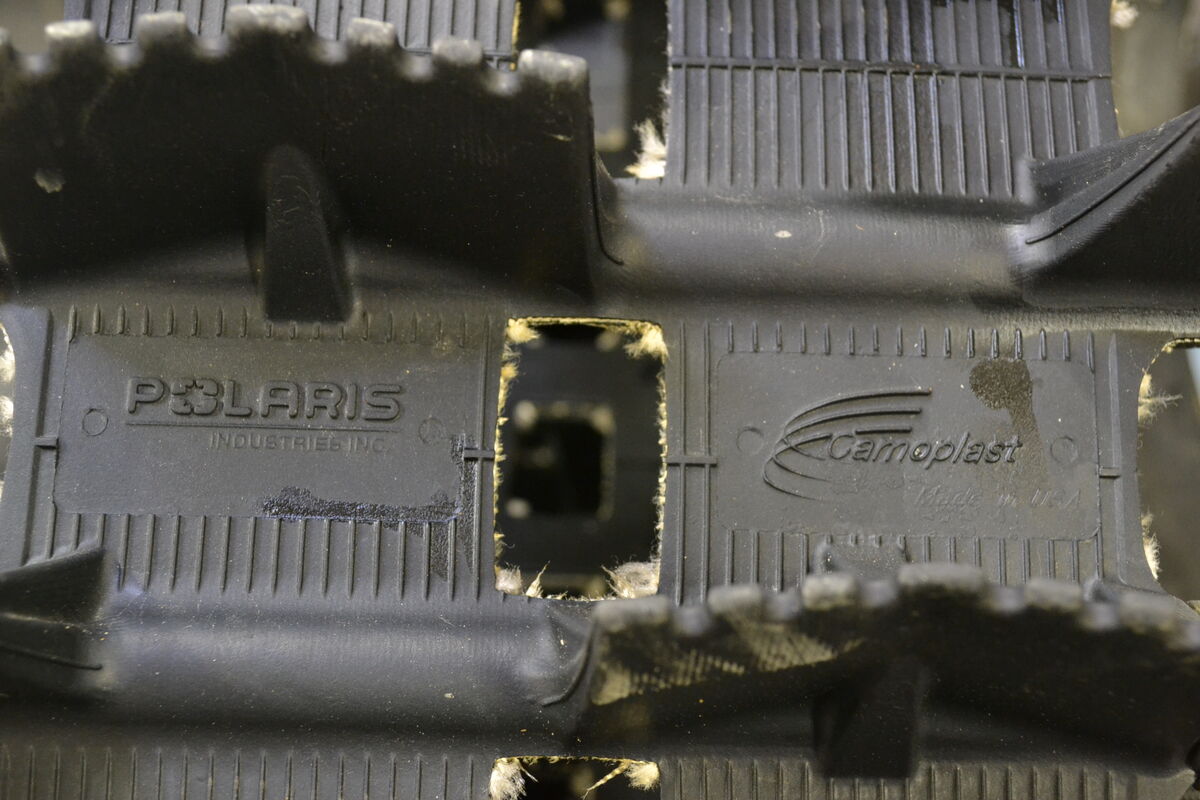 155" Polariksen alkuperäinen telamatto. Ollut Jatketussa Lynx Rave Re 600 Etec kelkan alustassa. Telasta puuttuu 4 lapusta palat. Maton runko täysin ehjä.