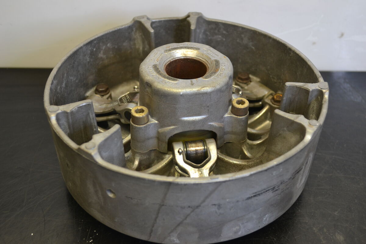 Täydellinen TRA3 kytkin Ski-Doo Mxz Xrs 600 Etec 2013 kelkasta. Kytkin on avattu ja puhdistettu samalla kytkimeen asennettiin uudet liukunastat. Soveltuu useisiin Lynx ja Ski-Doo kelkkoihin joissa kytkin on pitkällä kartiolla.
