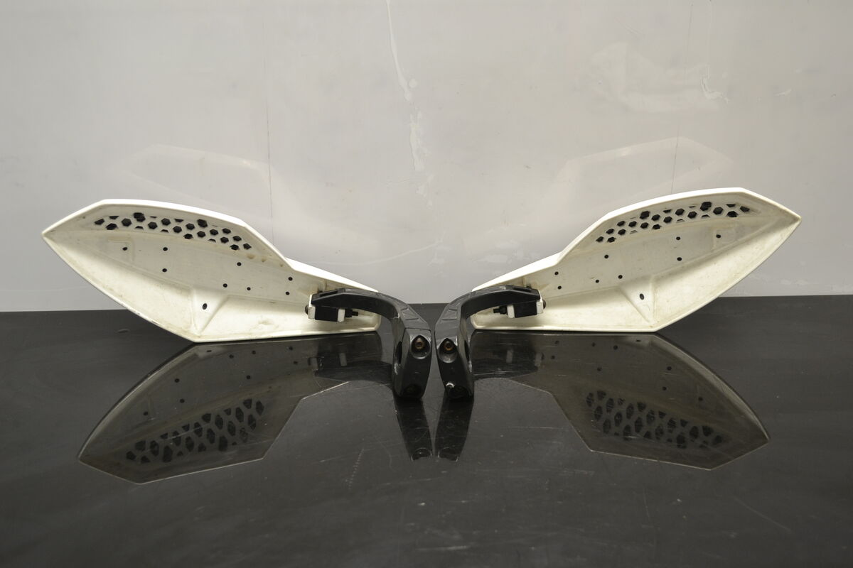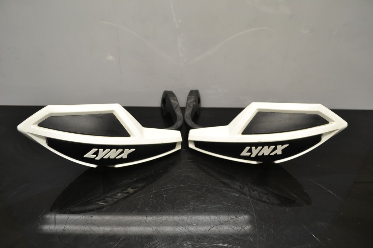 Högkvalitativa, använda original Lynx handskydd. Fint skick, inga sprickor. Inkluderar monteringsmaterial. Passar 22mm styren. Demonterade från Lynx Rave Re 800 Etec 2011 skoter.