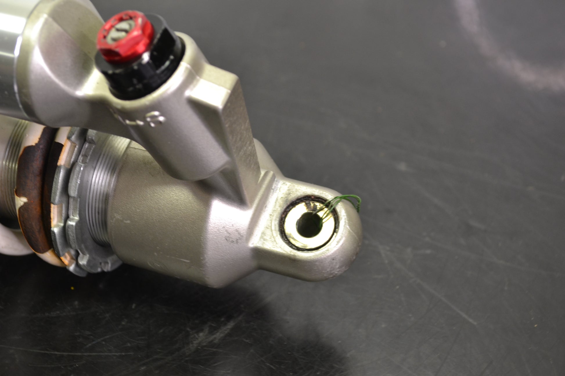Original stötdämpare för RE-modellernas PPS underreden. Demontrerad från Lynx Rave Re 600 Etec 2014 skoterns underrede.