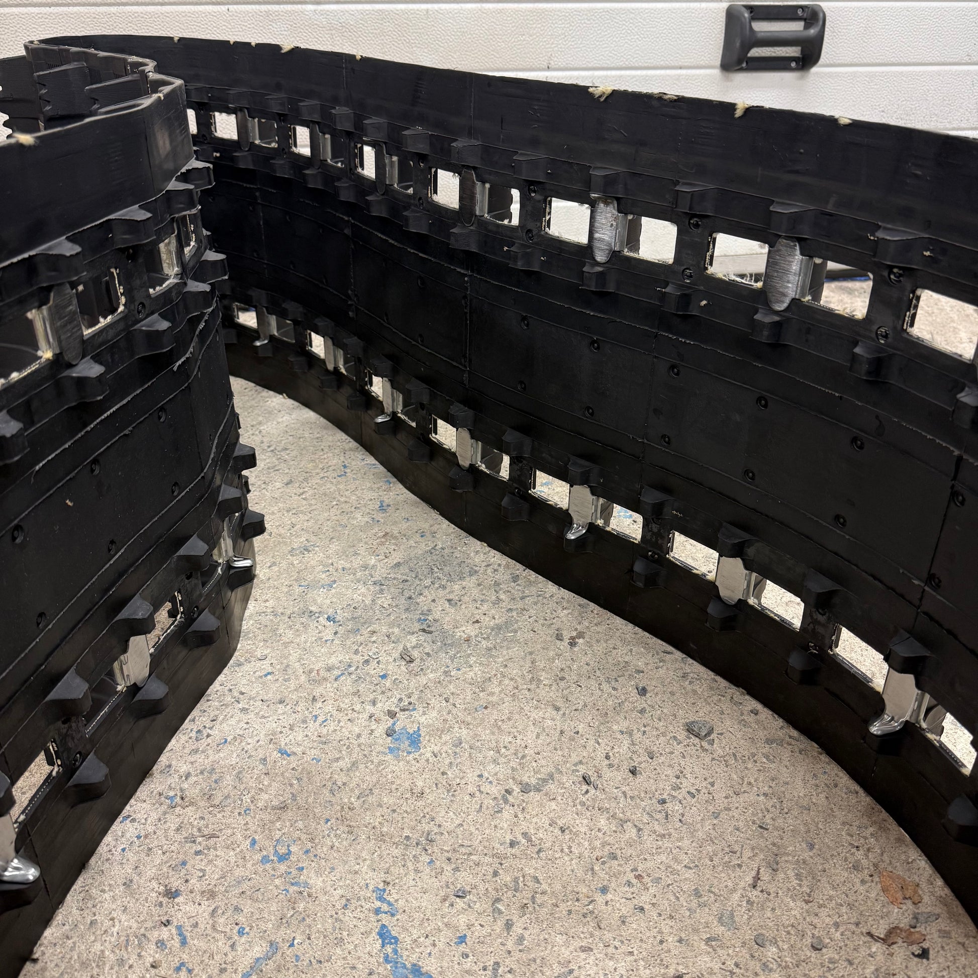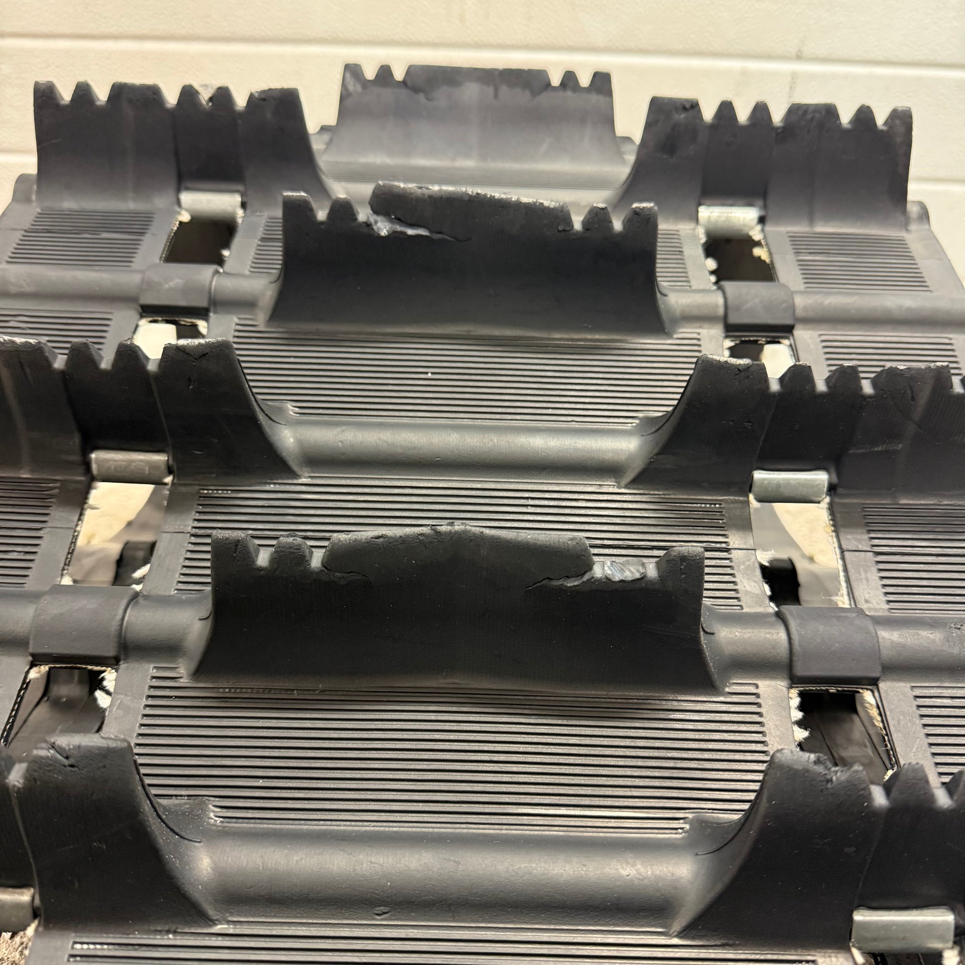 Begagnad Camso PowderMax bandmatta i gott skick för 146 lång banduppsättning. Mattan med 2” fläns ger klart bättre grepp och bärighet jämfört med den lägre standardmattan – en fungerande uppgradering för aktiv körning.