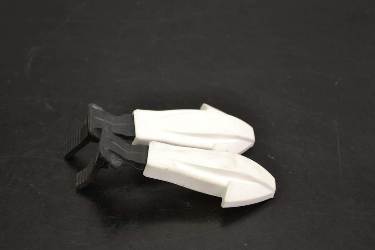 Sällsyntare vita kuomlås som passar Ski-Doo XP-chassits skotrar. Produkten innehåller 2 stycken kuomlås.