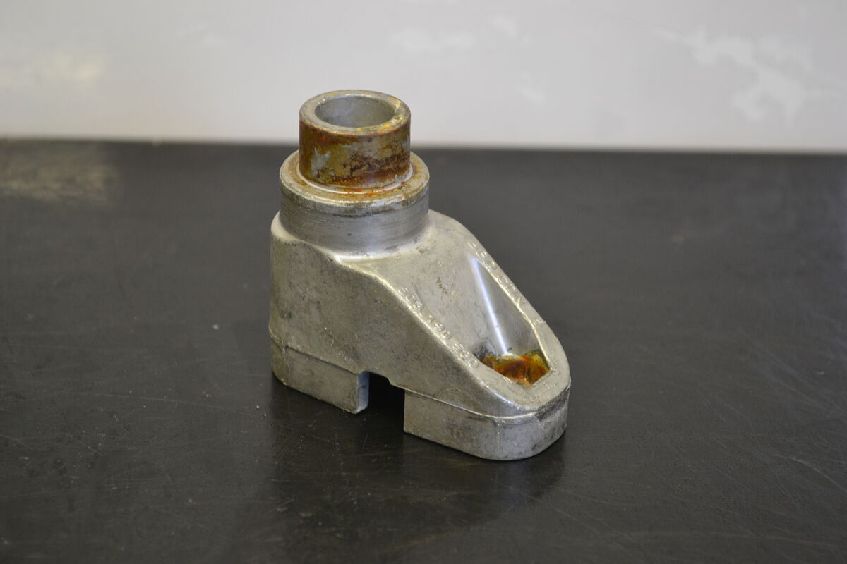 Fäste för bandhjul i PPS band. Observera det exceptionella fästet på glidramskonstruktionen med M8-bultar! Demonterad från Lynx Rave RE 600 Etec 2009 skoter.